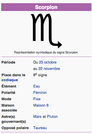 Le signe du scorpion (scorpio) est le huitième signe astrologique du Zodiaque.